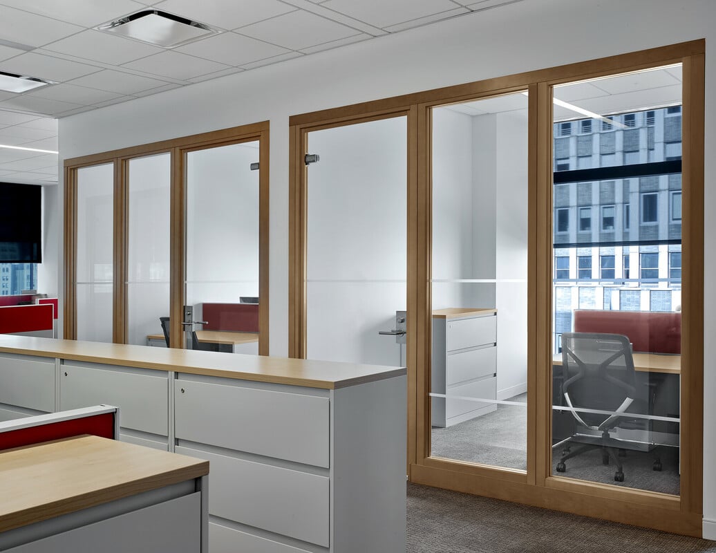 ZWall’s modular construction allows you to replace damaged parts, update tile materials, and reconstruct your office space with less cost and waste. Transform work spaces from a solid wall to clerestory, or to a full glass wall to capture more natural light. To see how our movable walls can create a variety of functional, sustainable office workspaces, contact Transwall today. Request samples of Transwall’s finishes to get started.